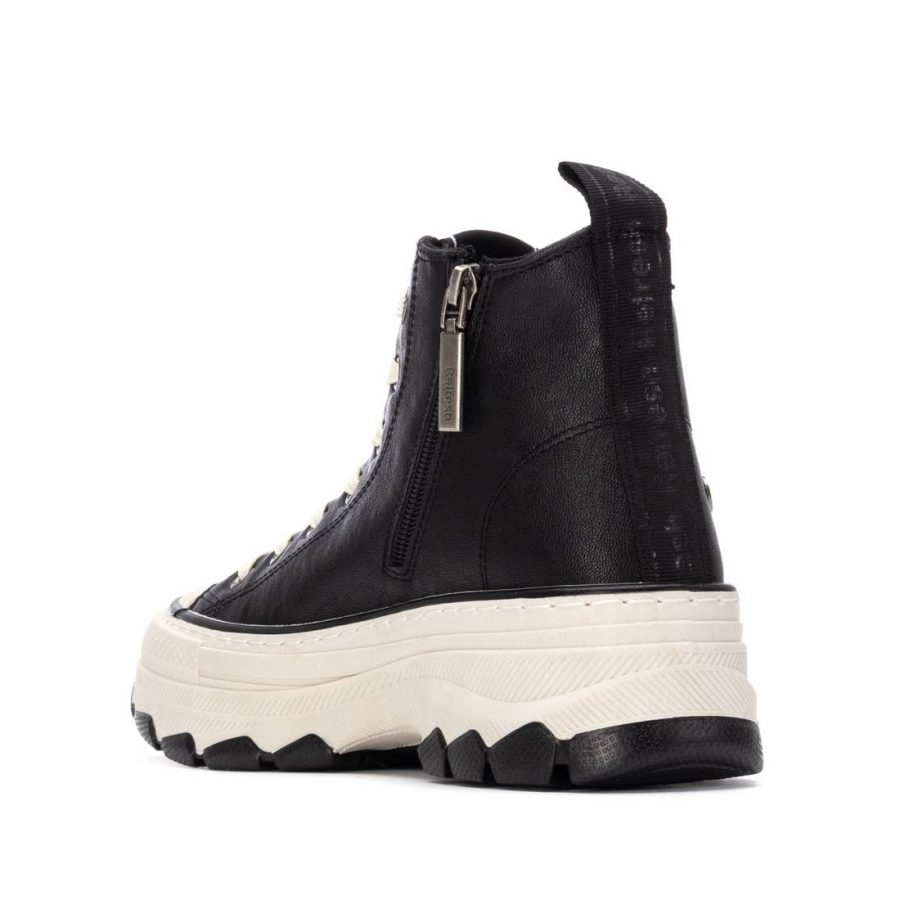 Black Refresh Faux Leather Trainer with Black Bottom Sole.