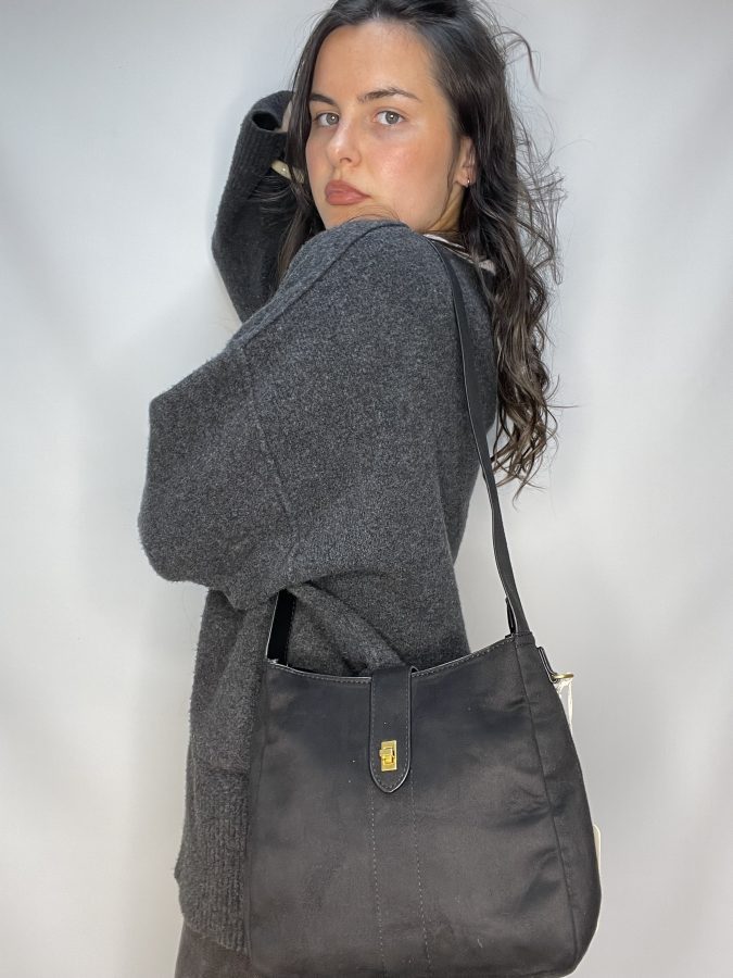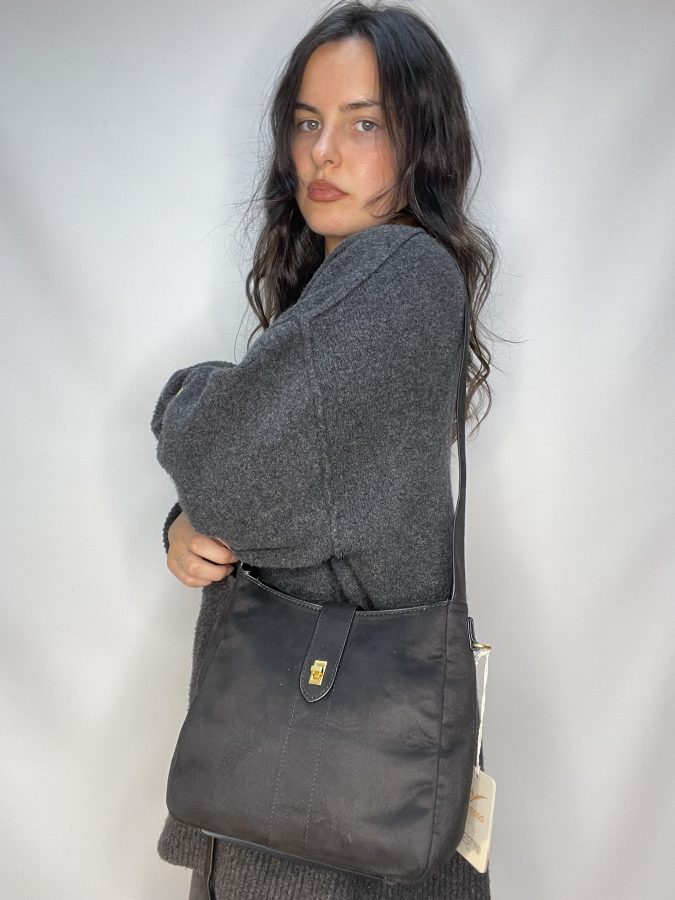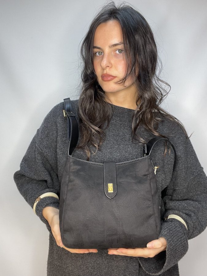 Description – BESTINI Crossbody bag with Gold Metal Clasp and Zip. Zip on top of Bag and Adjustable Strap