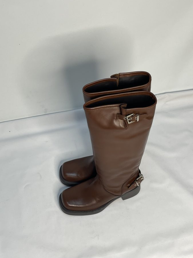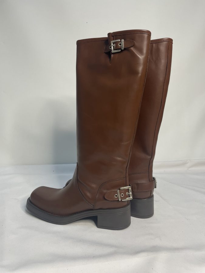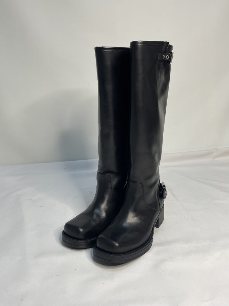 Description- Genuine Italian Leather Knee High Boots with Beautiful Square Toe. Silver Metal Buckle on Back of Ankle and on Top-Line of Boot creating an Elegant Style. These Fabulous Boots are a Seasonal Classic you will wear Every Autumn/Winter.