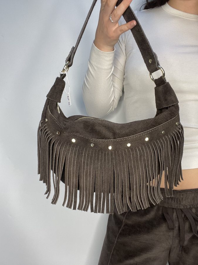 Chocolate Suede Stud Tassel Bag